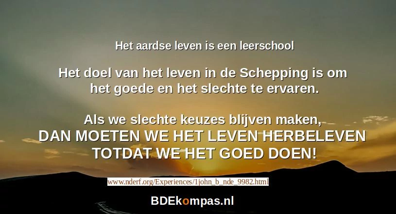Wat in vele BDE verhalen telkens terug komt is dat het leven op aarde een leerschool is.